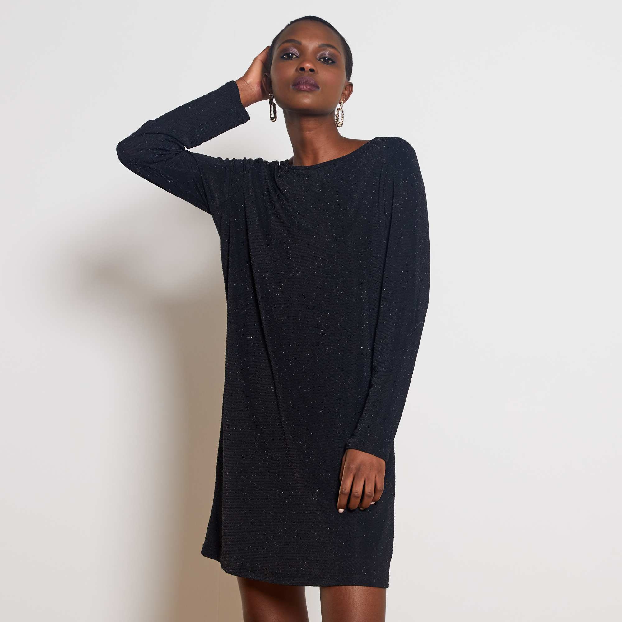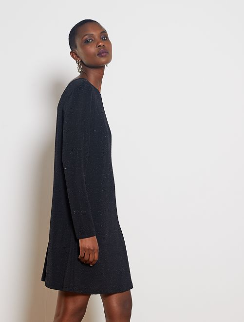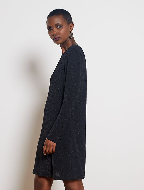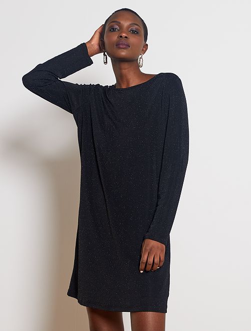 Um vestido fácil e agradável de vestir, com um toque de brilho para as festas ou uma noite e um bonito decote atrás!