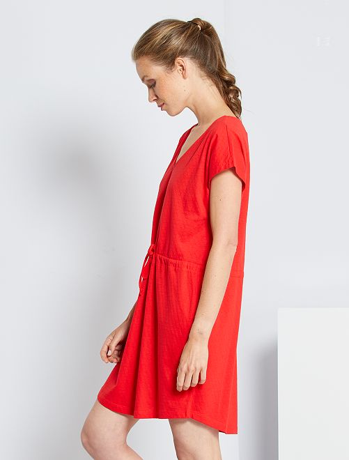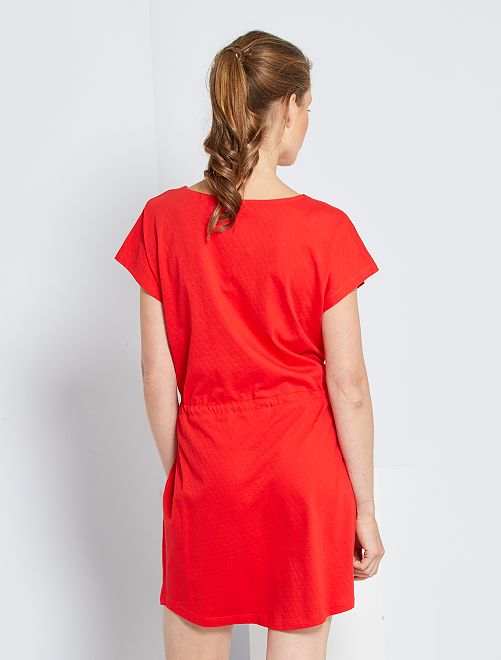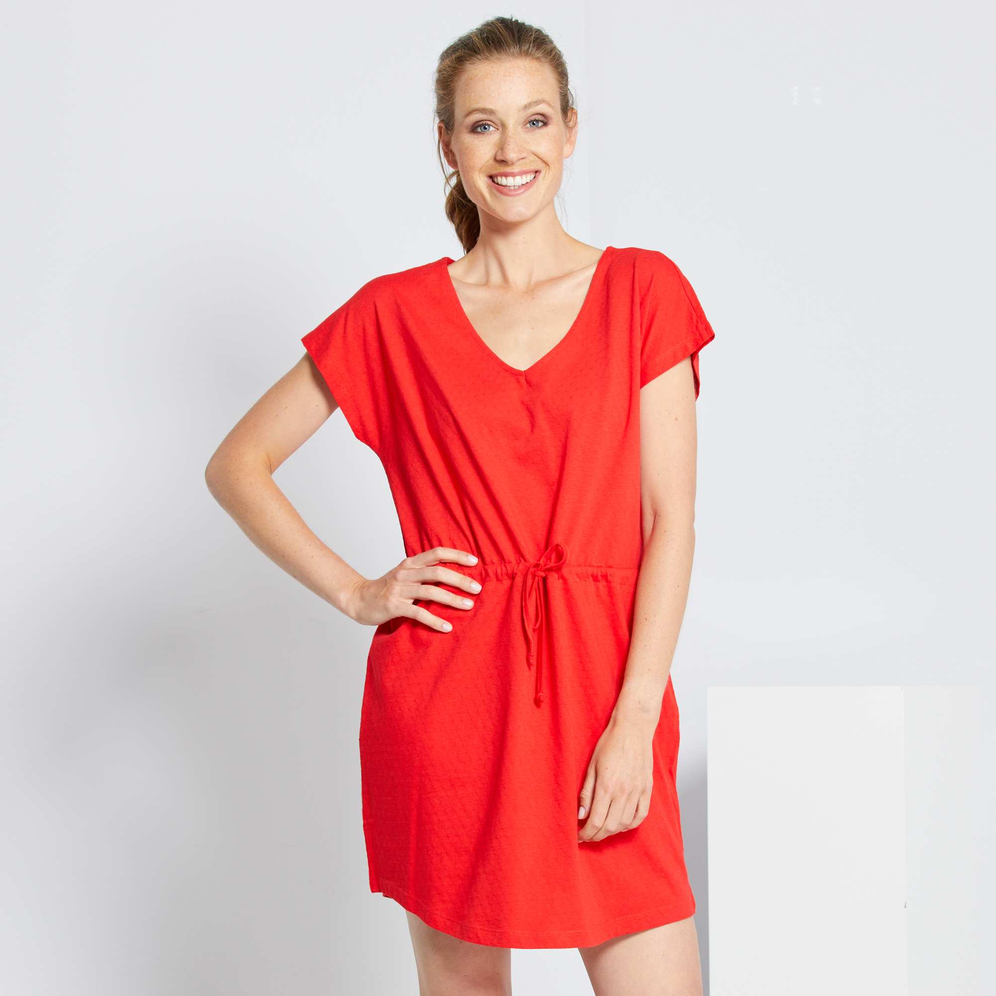 Um vestido fácil de usar que se diferencia pela bonita malha fantasia: uma bonita peça estival com a assinatura de 'Jacqueline de Yong'.