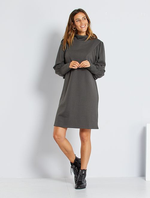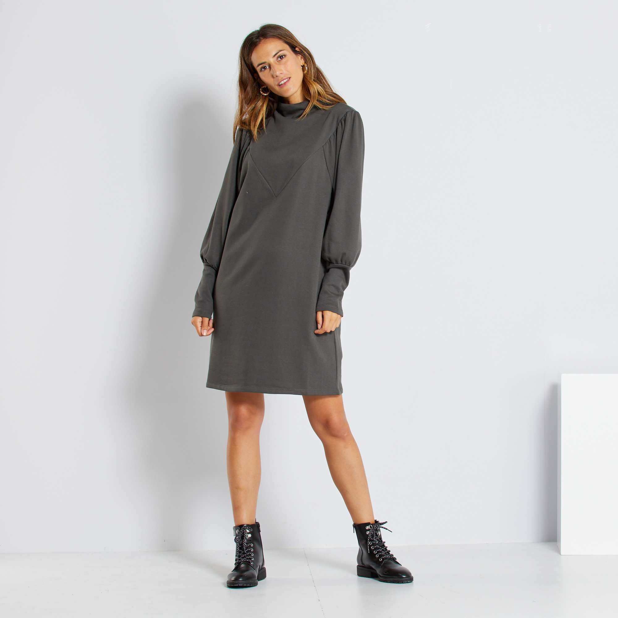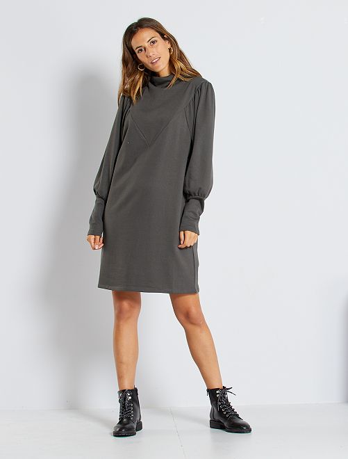 Um vestido-camisola decididamente original com o recorte em V e as mangas de balão!